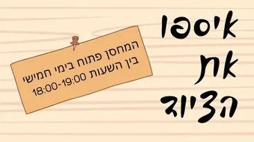 המחסן פתוח בימי חמישי בין השעות 18:30-20:00